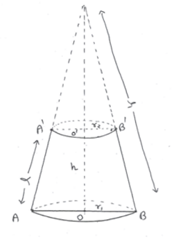 (vi)Slant height of the cone of which the frustum is a part l = l.r1 / (r1. r2)