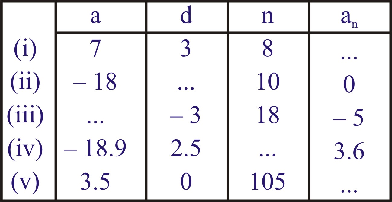 (iii) a = 4, d = – 3 (iv) a = – 1, d=12
