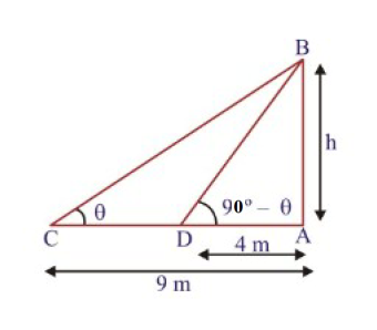 Sol. Let AB be the tower. Let C and D be the two points at distances 9 m and 4 m respectively from the base of the tower. Then AC = 9 m, AD = 4m.