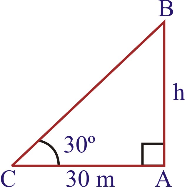 Sol. Let AB be the tower of height h metres and let C be a point at a distance of 30 m from the foot of the tower. The angle of elevation of the top of the tower from point C is given as 30º.