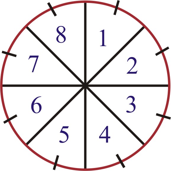 Hence, P(arrow points at 8) = 18
