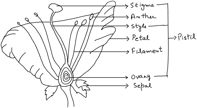 Q.7 Draw a labeled diagram of the longitudinal section of a flower.