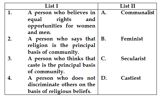 Q.12 Match List I with List II and select the correct answer using the codes given below the List