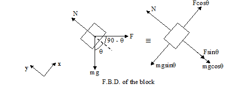 The forces acting on the block are shown in the free body diagram.