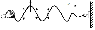 The direction of propagation of the wave is along the rope, but the individual particles of the rope vibrate up and down. The electromagnetic wave (light, radio waves, X-rays, etc.) through not mechanical, are said to be transverse, as the electric and magnetic field vibrate in direction perpendicular to the direction of propagation.