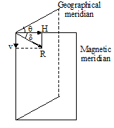 The resultant magnetic field due to earth Be can be resolved into two components (i) horizontal component (H), (ii) vertical component (V). From figure the horizontal component of earths magnetic field is the component of total intensity of earths magnetic field in the horizontal direction in magnetic meridian. i.e.