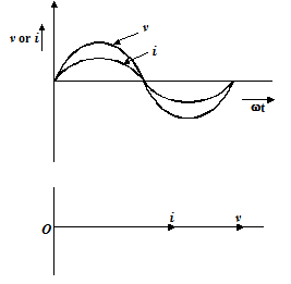 The voltage and current waves are as shown in figure (a) and vectorically as shown in figure (b).