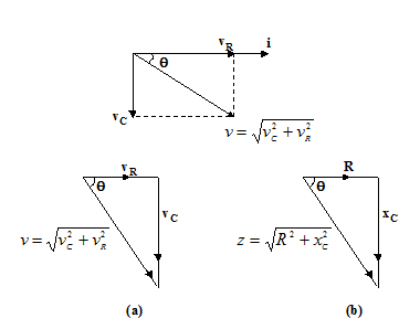 v=v2R+v2c−−−−−−√ and Z=R2+X2C−−−−−−−√