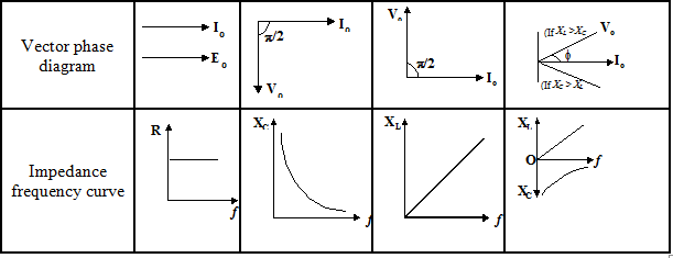 The effective reactance is inductive or capcitive depending upon XL > XC or XL < XC. The inductive reactance XL is directly proportional to the frequency while the capacitive reactance is inversely proportional to the frequency. At certain frequency both reactances become equal and this frequency is called resonance frequency. At resonance frequency XL = XC or ωL=1/ωC i.e.
