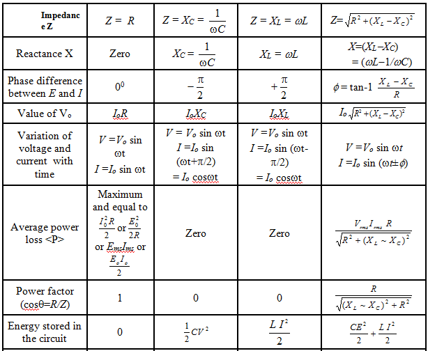 Different types of ac circuits