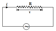 In a circuit containing pure resistance (ohmic) only i.e. free from any inductance or capacitance in the circuit, the current and potential difference between any two points is given by i = v/R where i and v are instant current and voltage respectively and R is the resistance between the points. The emf applied is