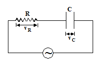 Such a circuit having resistance, capacitance in series with an A. C. source is shown in figure.