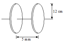 Here, d = 5.0 mm = 5.0 x 10-3 m; R = 12 cm = 12 x 10-2 m, I = 0.15 A.
