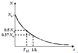 where No is the initial number of parent nuclei at t = 0. The number that survive at time t is therefore