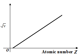 In 1913, Moseley noted that the characteristic lines shifted systematically as the target material was changed. He plotted the square root of the frequency of the Kα line versus the atomic number Z for many elements. The straight line he obtained is shown in the figure.