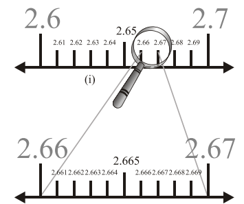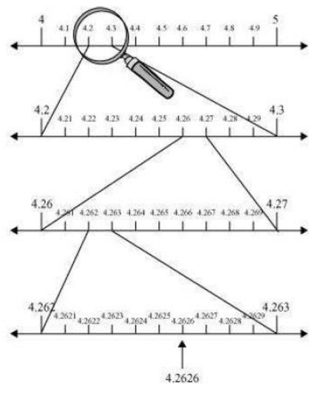 The figures here represent the process of visualisation of representation of numbers on the number line. Such process is known as the process of successive magnification.