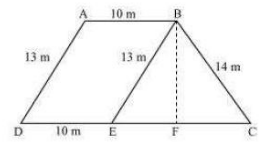 Now, for ∆BEC, semi – perimeter s = (13 + 14 +15)/2 = 21 m.