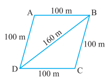 For Example: Kavita has a piece of land which is in the shape of a rhombus. She wants her one daughter and one son to work on the land and produce different crops. She divided the land in two equal parts. If the perimeter of the land is 400 m and one of the diagonals is 160 m, how much area each of them will get for their crops?