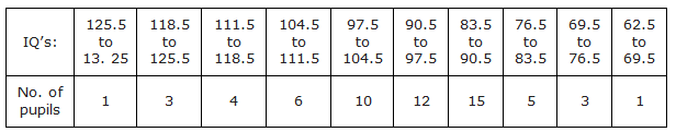 For Example: The following table gives the distribution of IQ’s (intelligence quotients) of 60 pupils of class V in a school: