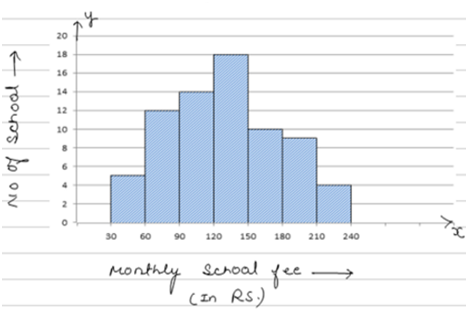 Step 3: Construct rectangles to obtain the histogram of given frequency distribution as shown in fig.