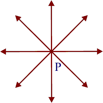 Mark a point P on the plane of paper. Using a sharp pencil and a ruler, draw a line l passing through it as shown in the figure. Draw another line m passing through P. Continuing this process, we can draw as many lines as we please, each passing through point P. Thus, an infinite number of lines can be drawn passing through a given point.