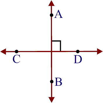 (ii) Perpendicular Lines : Two lines AB and CD lying the same plane are said to be perpendicular, if they form a right angle. We write AB⊥CD.