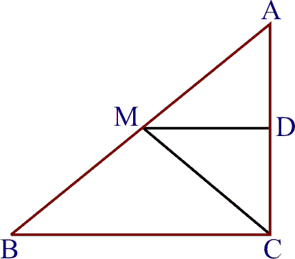 Given: Δ ABC is right angled at C, M is the mid- point of hypotenuse AB. Also MD||BC.