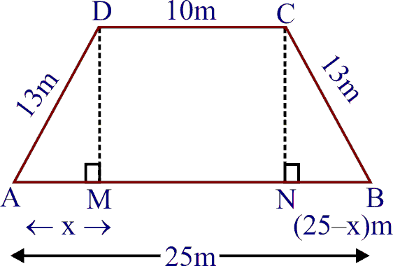 Q.9 A field is in the shape of a trapezium whose parallel sides are 25 m and 10 m. The non- parallel sides are 14 m and 13 m. Find the area of the field.