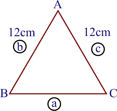 Here a = b = 12 cm and a + b + c = perimeter = 30 cm