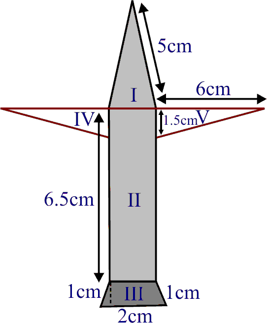 Hence, total area of the paper used = (2.49 + 6.5 + 1.3 + 4.5 + 4.5) cm2