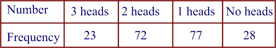 Q.4 Three coins are tossed simultaneously 200 times with the following frequencies of different outcomes :