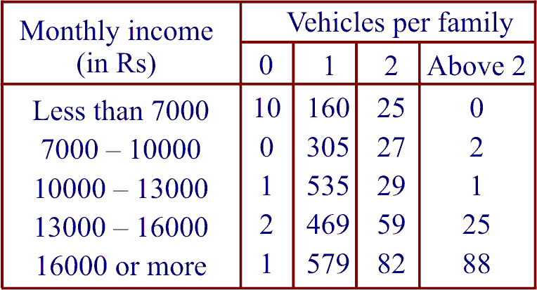 Therefore, P (families earning Rs 10000 – 13000 per month and owning exactly 2 vehicles)