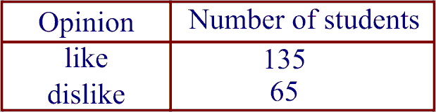 Q.7 To know the opinion of the students about the subject statistics, a survey of 200 students was conducted. The data is recorded in the following table.