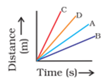 Q.8 Four cars A, B, C and D are moving on a levelled road. Their distance versus time graphs are shown in Figure.