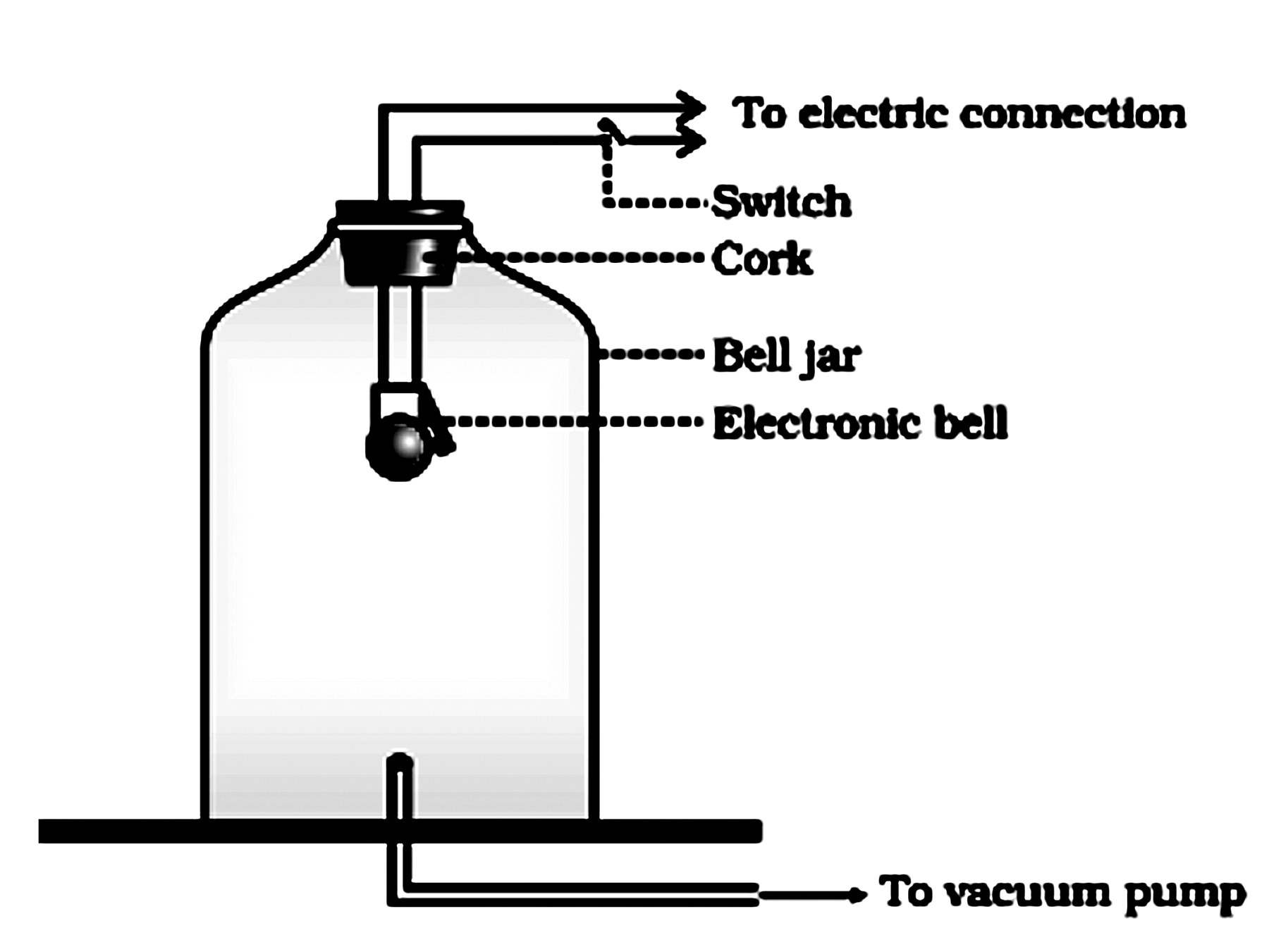 Take an electric bell and an air tight glass bell jar connected to a vacuum pump. Suspend the bell inside the jar, and press the switch of the bell. You will be able to hear the bell ring. Now pump out the air from the glass jar. The sound of the bell will become fainter and after some time, the sound will not be heard. This is so because almost all air has been pumped out.This shows that sound needs a material medium to travel.