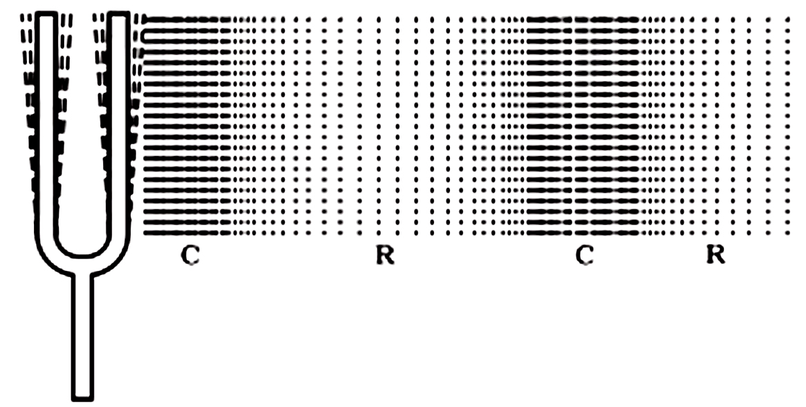 Q.2 Describe with the help of a diagram, how compressions and rarefactions are produced in air near a source of sound?